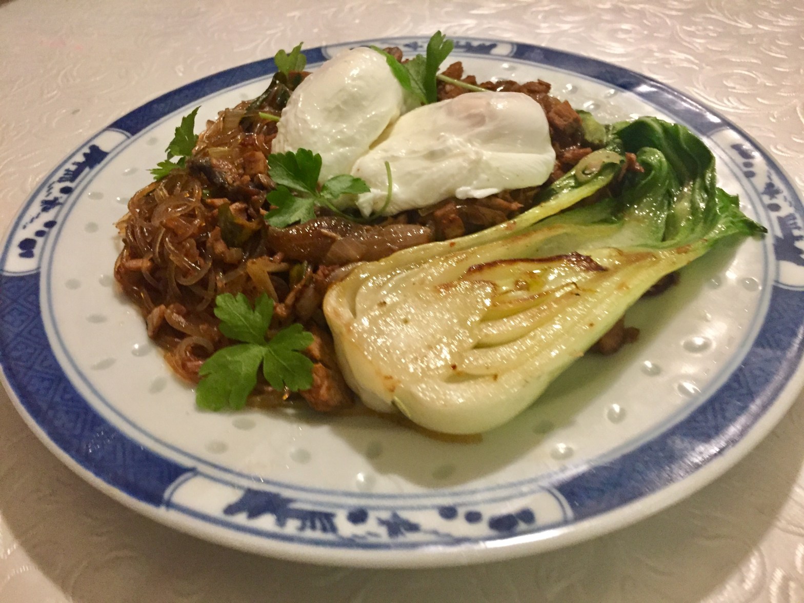 Korean porkfilé with rutabagakimchi, sesamefried spinnach and softboiled eggs.
