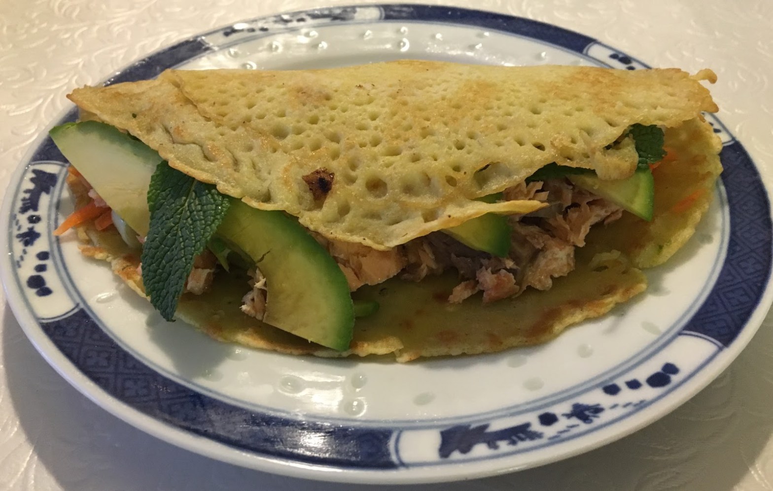Bánh Xèo – Vietnamese rice pancake with salmon, avocado and mint