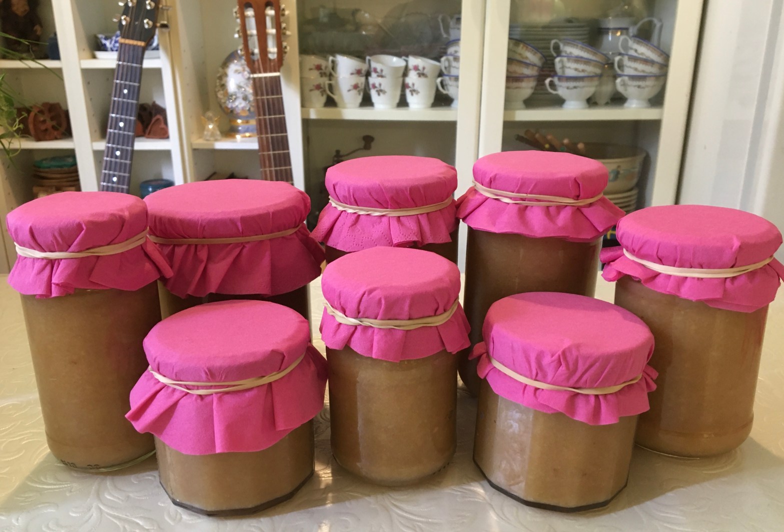 Today I have made Applesauce from fallen apples. Last night there was a heavy thunderstorm and heavy rains. In the common yard outside my apartmentcomplex there are these big appletrees. Anyone can pick the apples but I never see anyone but me do it. However most are so high up I cannot reach them. But due to the weather apples fell to the ground last night. This morning I went out and picked them. I have now cooked all and I got 2 kg of free Apple Sauce! I will freeze the jars and it will last me a year.