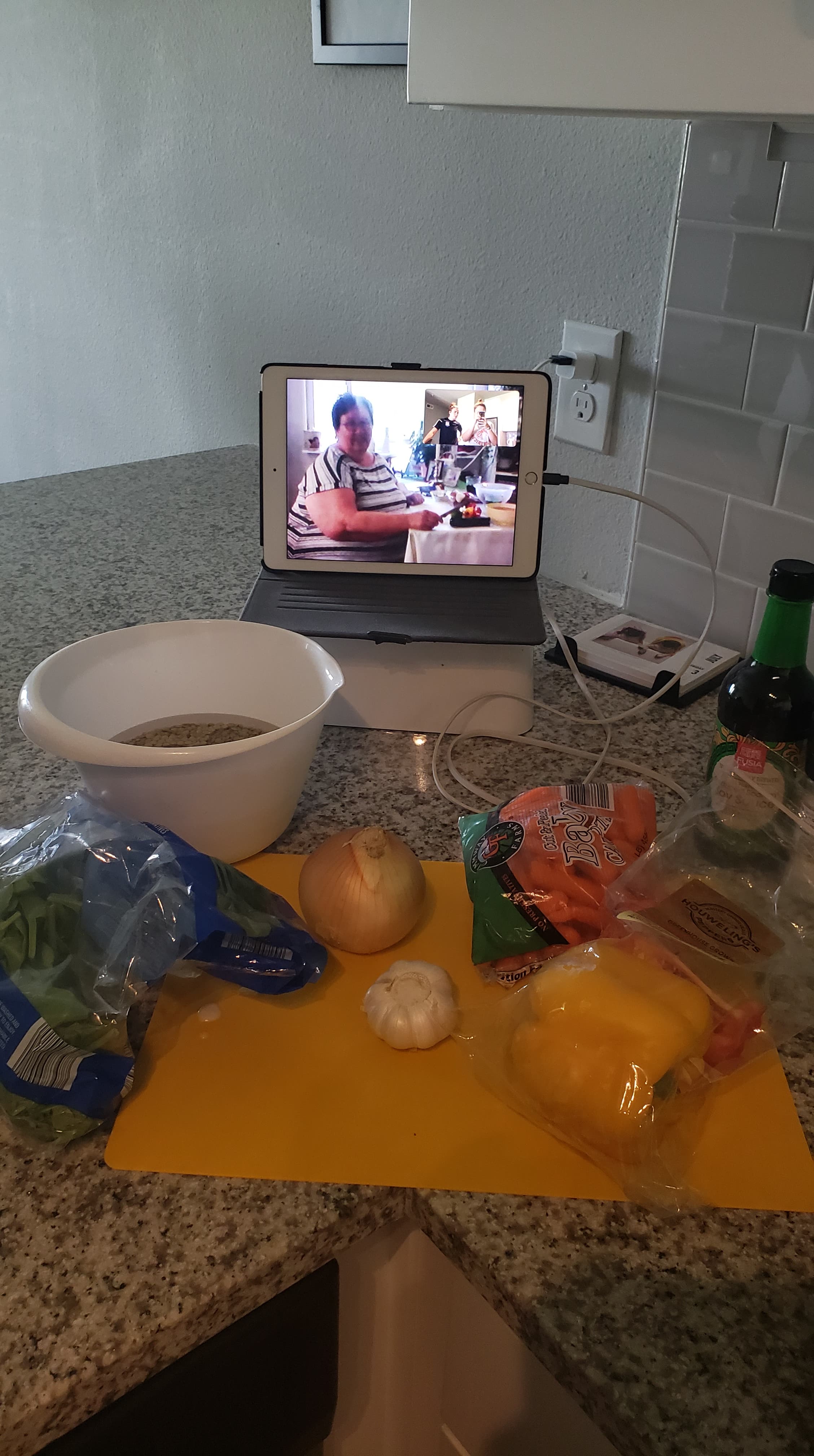 Cookalong with Frida and Ciana last Sunday night. They in Frisco, Dallas Texas, USA and me here in Sollentuna Sweden. We made a Vegetarian Nacho platter with Tofu, vegetables and Guacamole. It was amazing. We marinaded the Tofu and baked it in the oven. We made Nacho chips from Tortillas and fried in the airfryer. We chopped Bell pepper and some cabbage and Bok Choy and made Guacamole from Avacado. When the ingredients were prepared we assembled the platter, sprinkled with shredded cheese and put it in the oven for the cheese to melt. Such an easy and great meal.