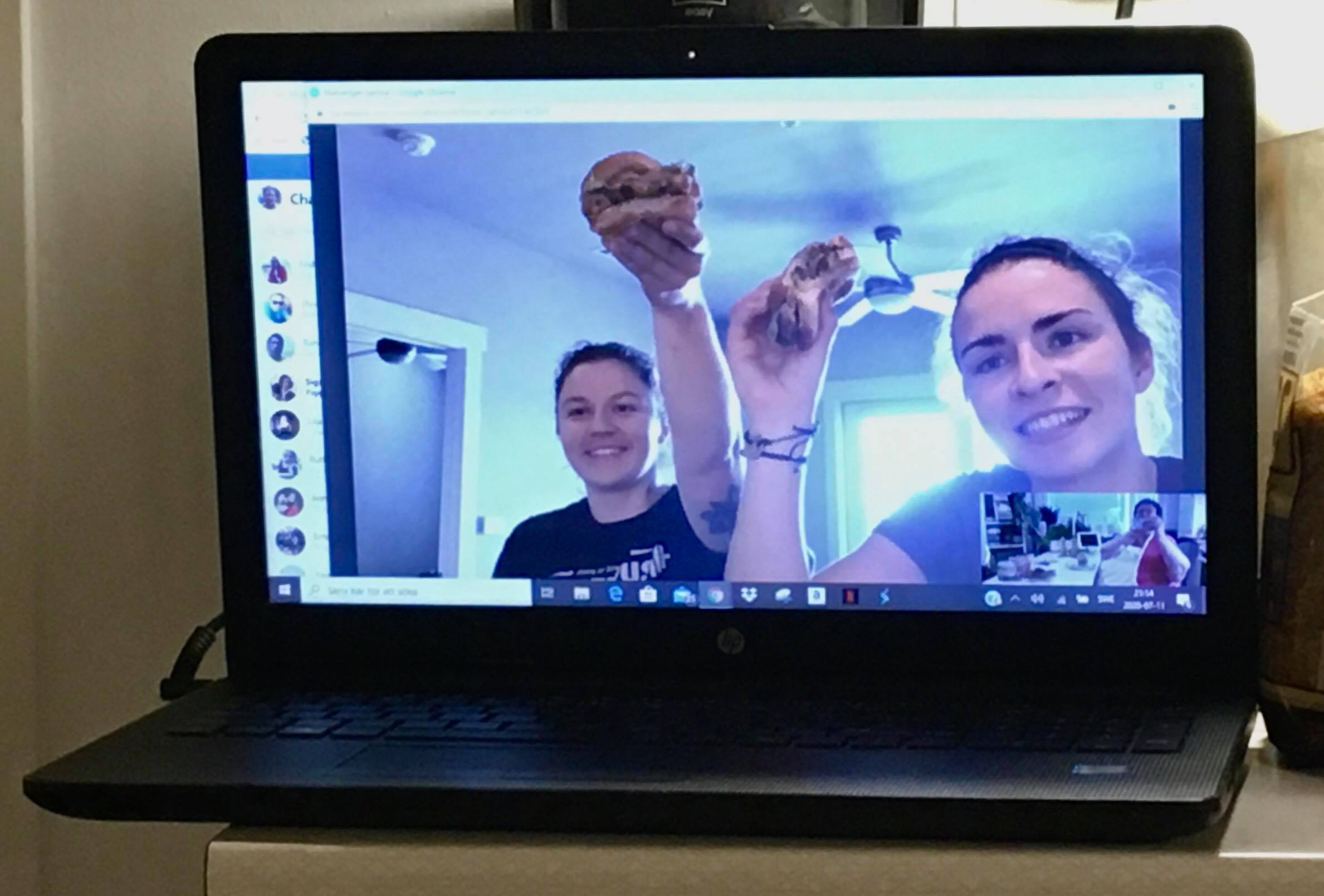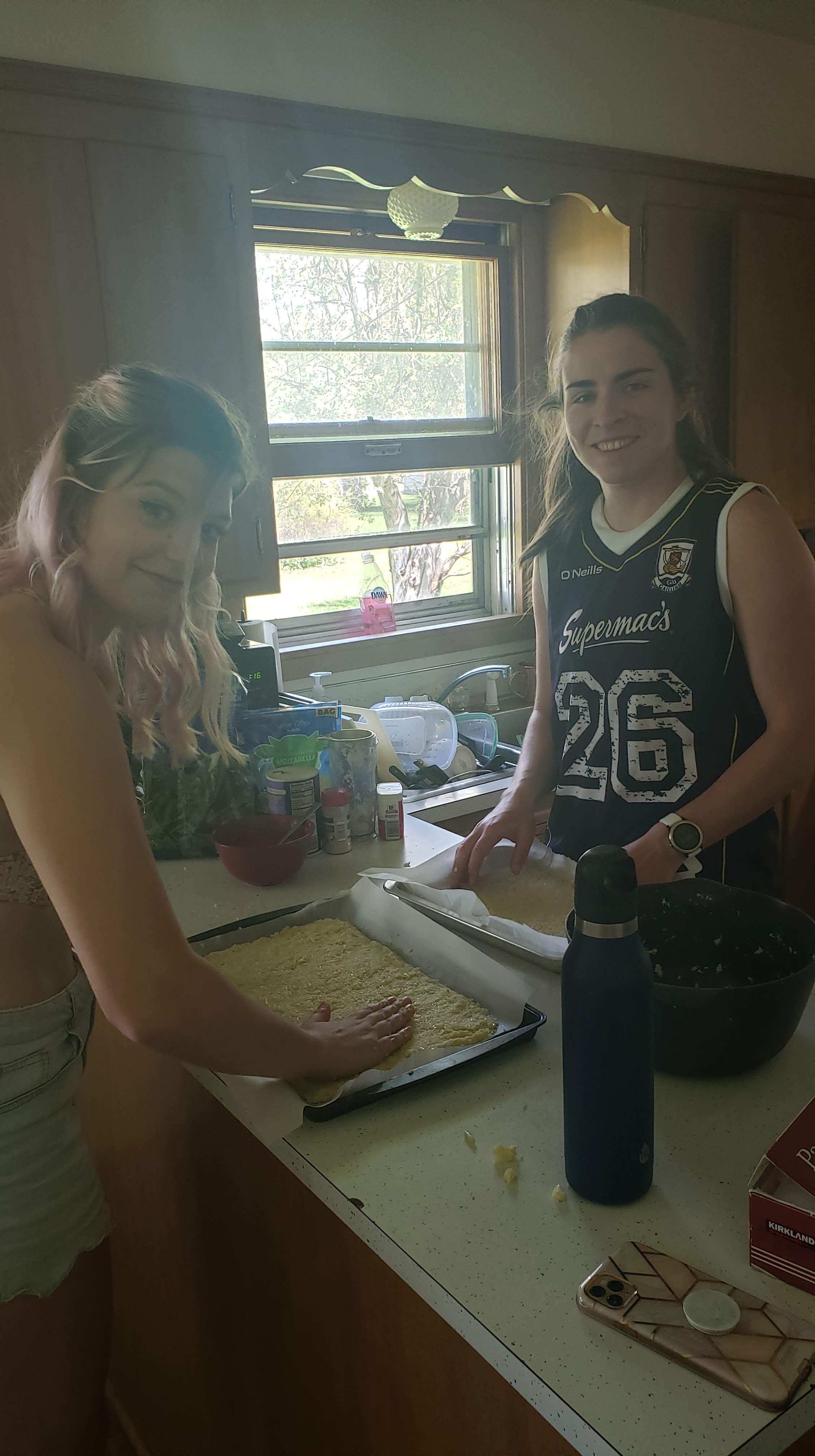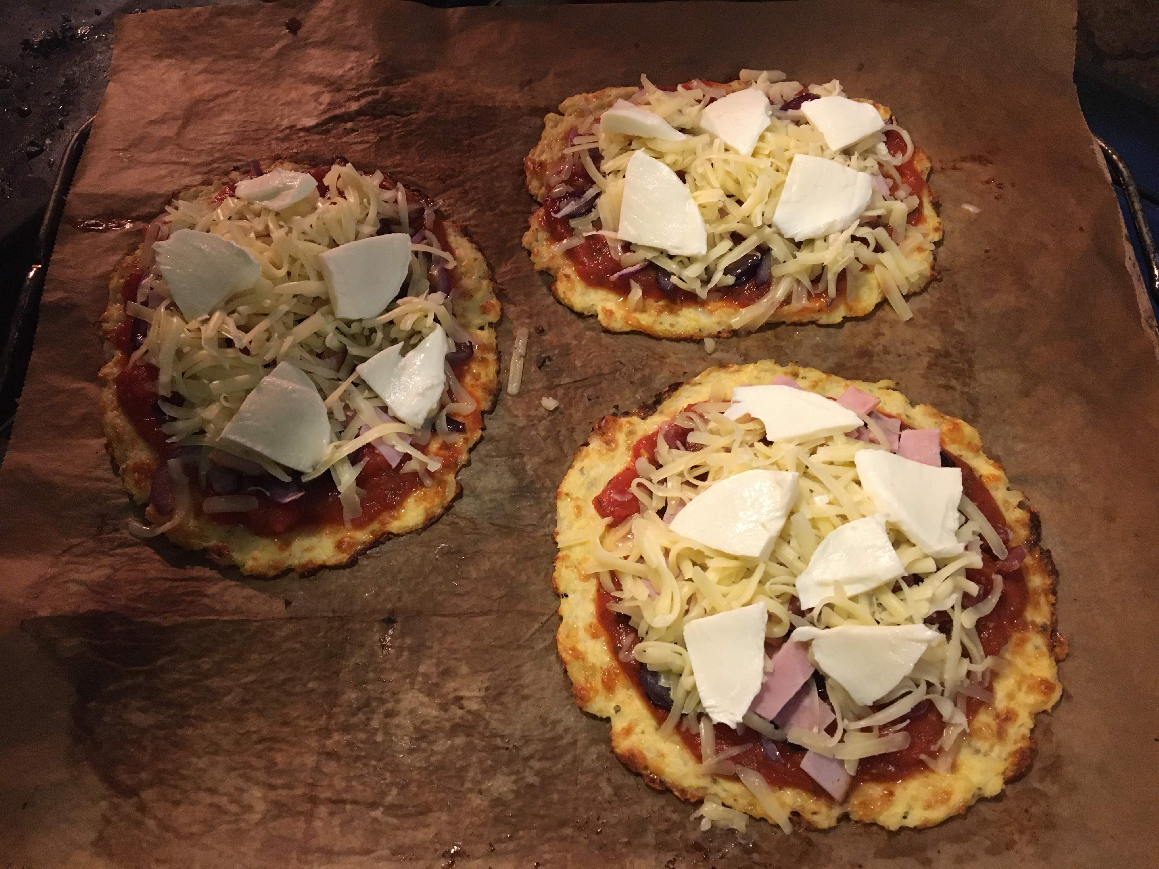 Cookalong on Valentines Day with Frida and Ciana in Frisco, Dallas, Texas USA and me here in Sollentuna Sweden. On Valentines day we made pizza. The crust glutenfree, made with almond flour. Frida and Ciana made their pizza vegetarian with mushrooms and bellpeppers. I made three different toppings. One with white sauce from ricotta cheese and topped with spinnach, onions and brusselsprouts. Another with tomatoesauce, onions and chorizo sausage. The third with tomatoe sauce, ham, shrimps and onions. I mixed mozzarella and parmesan cheese on all three.