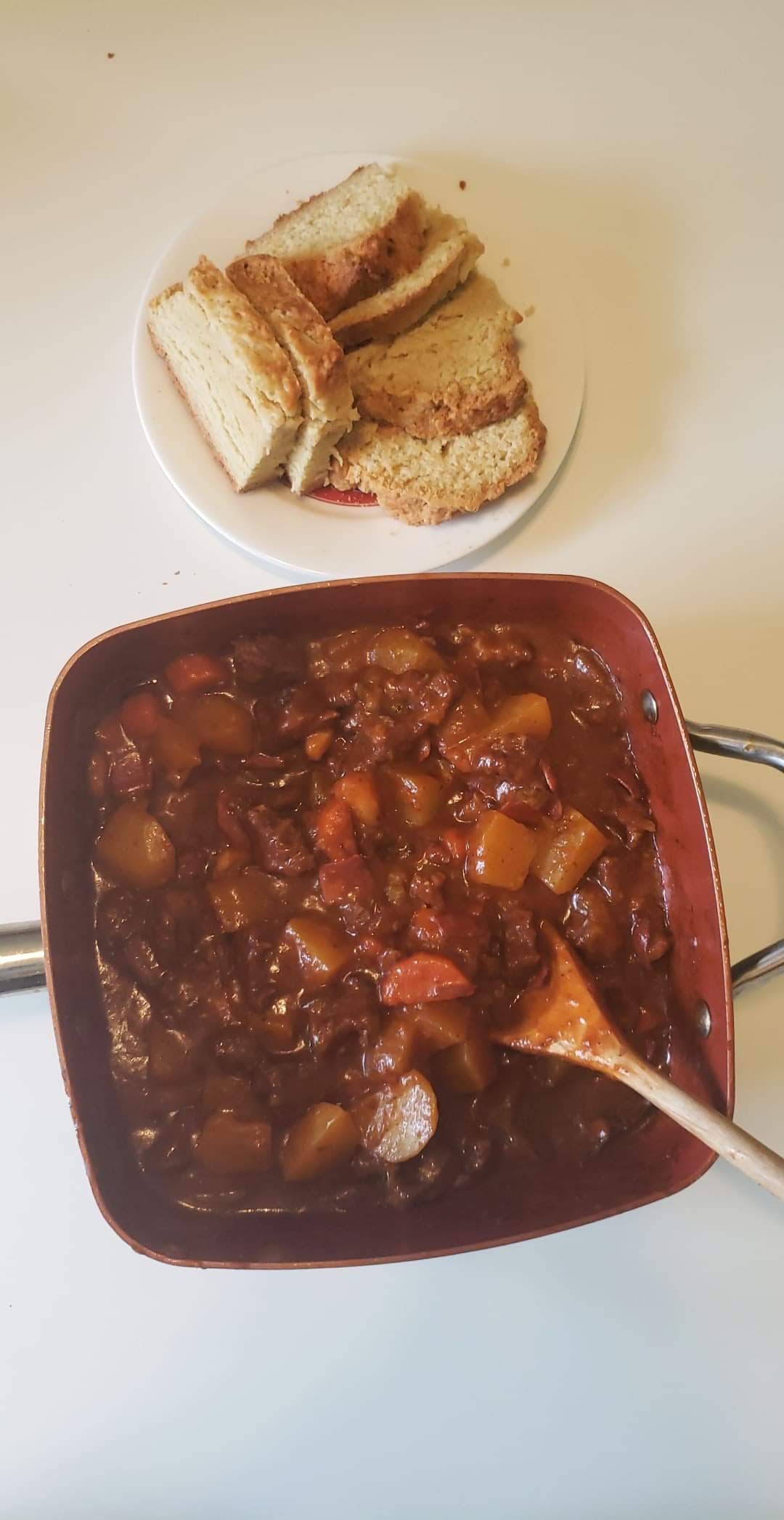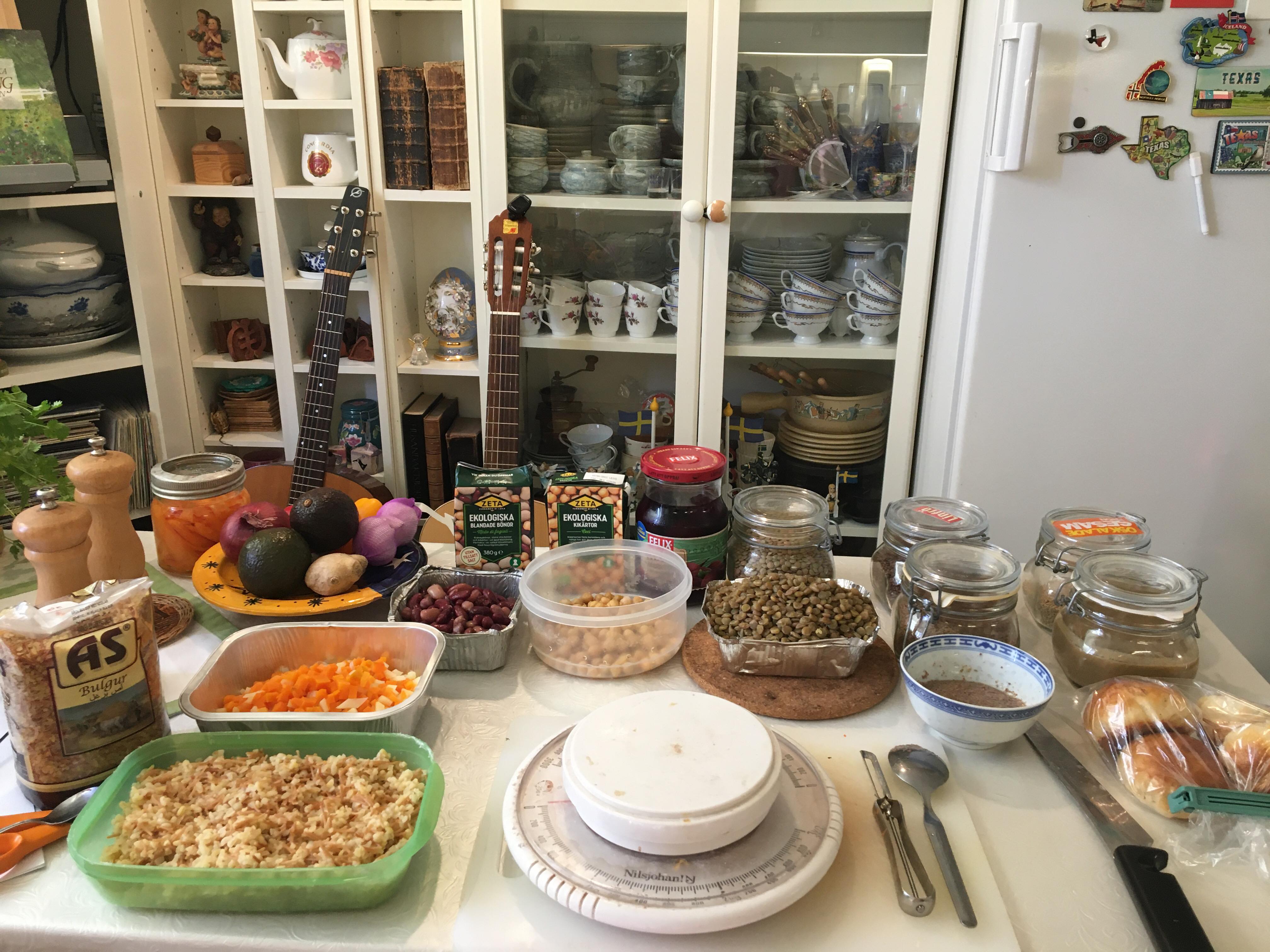 Cookalong with Frida and Ciana last night. They in Frisco, Dallas Texas, USA and me here in Sollentuna Sweden. We made The Hungarian National Dish Goulash. However we made it Vegetarian/Vegan. It turned out so wonderful. What a comforting dish! A Vegetable Stew with mushrooms, tomatoes and beans and spiced with paprika, cinnamon, cumin and caraway seeds. Goulash originates back to the 9th century and was a shepherds dish.