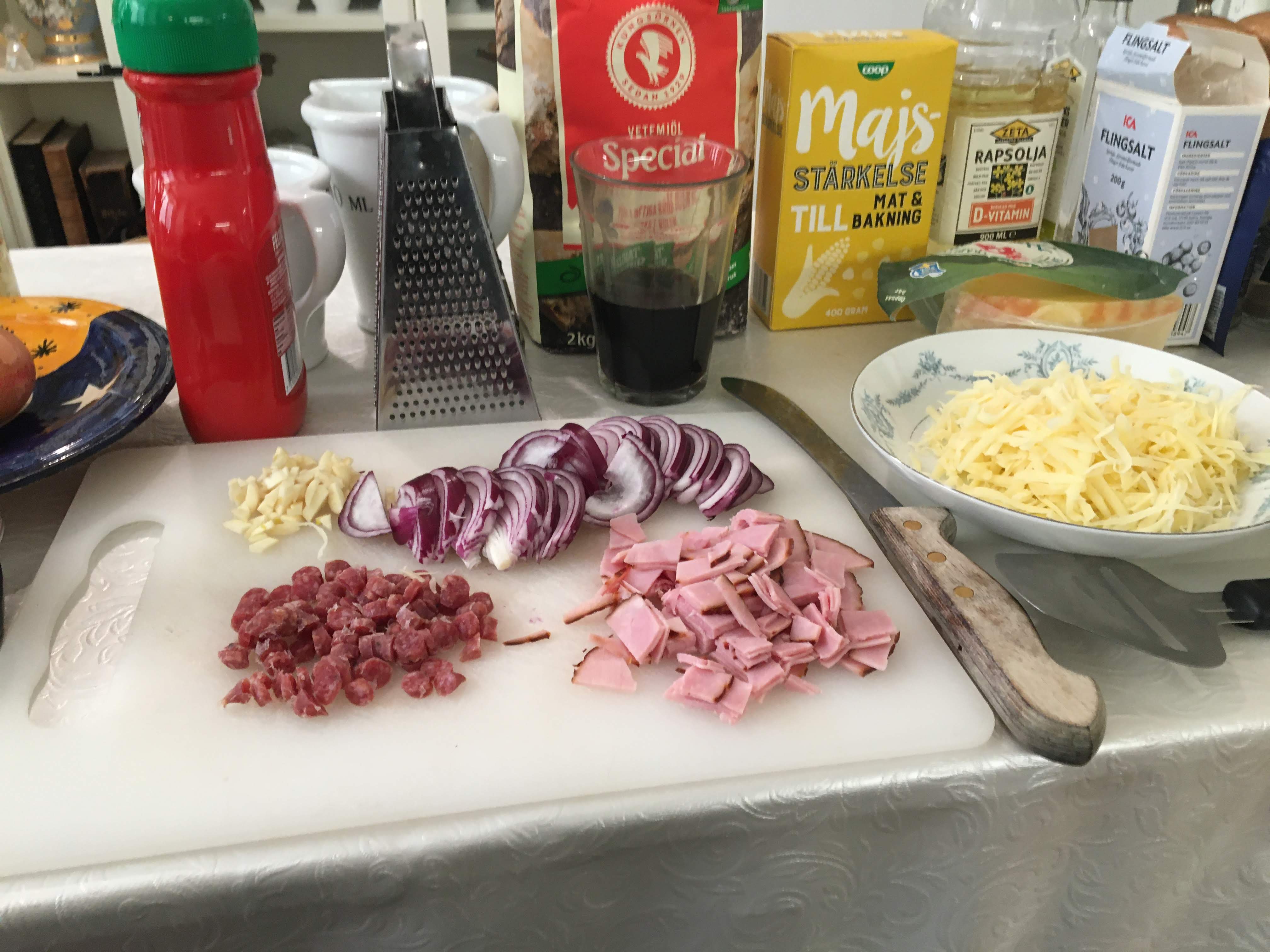 Cookalong with Frida and Ciana tonight. They in Frisco, Dallas Texas, USA and me here in Sollentuna Sweden. Today we made a really traditional Norwegian dish, Norwegian ”Fiskepudding” which is a Fish Loaf. The recipe for Fiskepudding is from my mothers recipebook and was on the menu in february 1957.